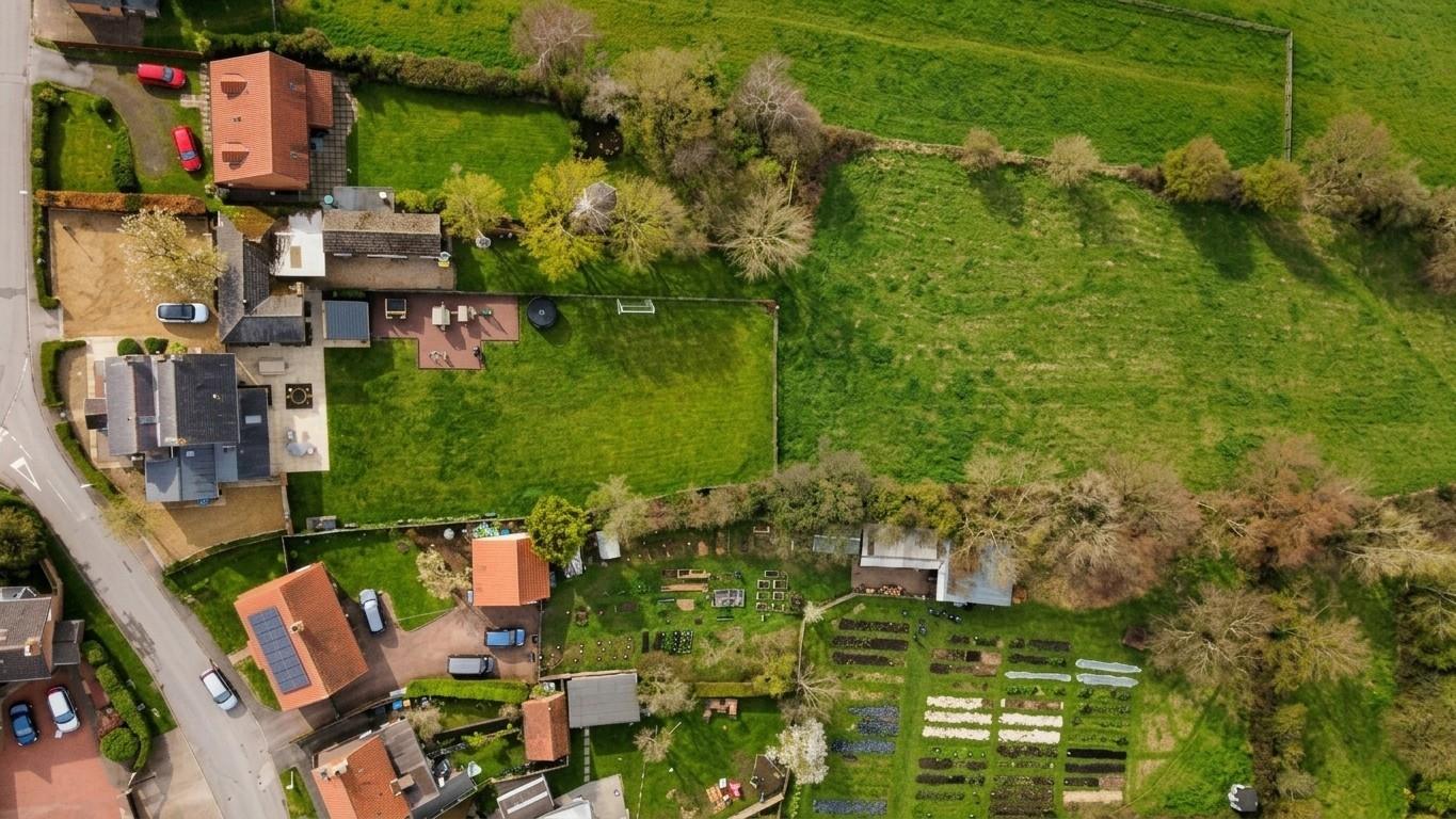 Outside - The property is set within approximately 2.2 acres of versatile grounds, offering a rare blend of formal gardens and functional land. The arrival is served by two practical gravelled driveways providing extensive off-road parking, one of which is beautifully framed by a mature magnolia tree. To the rear, the garden has been thoughtfully designed for outdoor living; an expansive patio features a fully equipped outdoor kitchen with a built-in BBQ, fridge, and sink. This leads onto a large lawn with a dedicated children's play area, with a farm gate providing direct access to the paddock beyond.