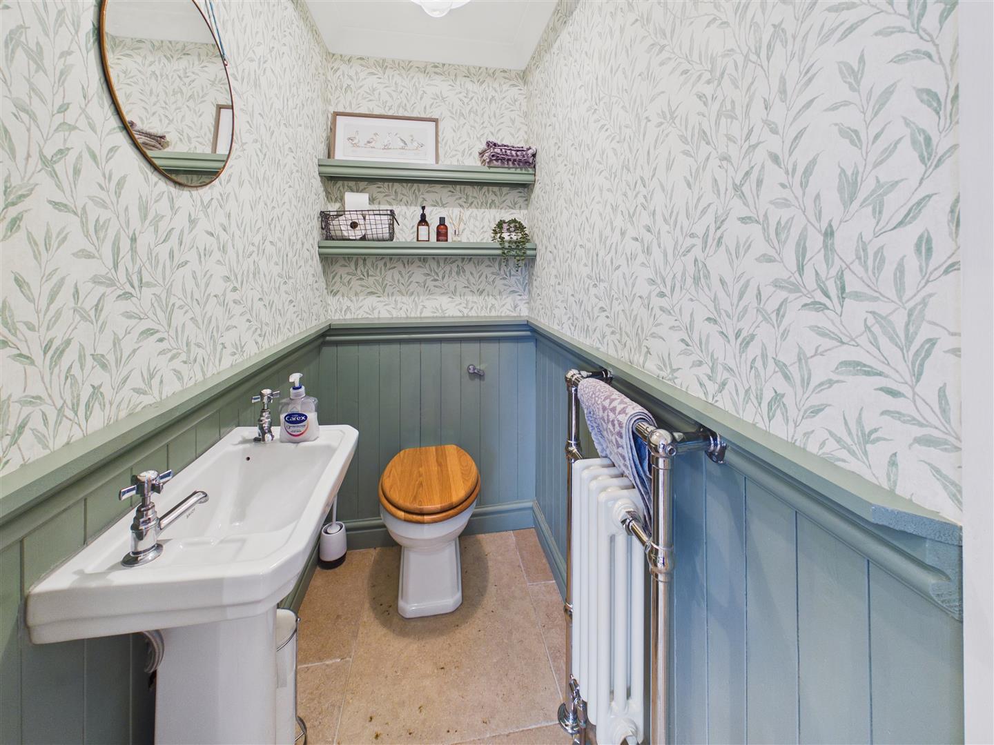 Cloaks/W.C. - With low flush W.C., wash hand basin and feature radiator.