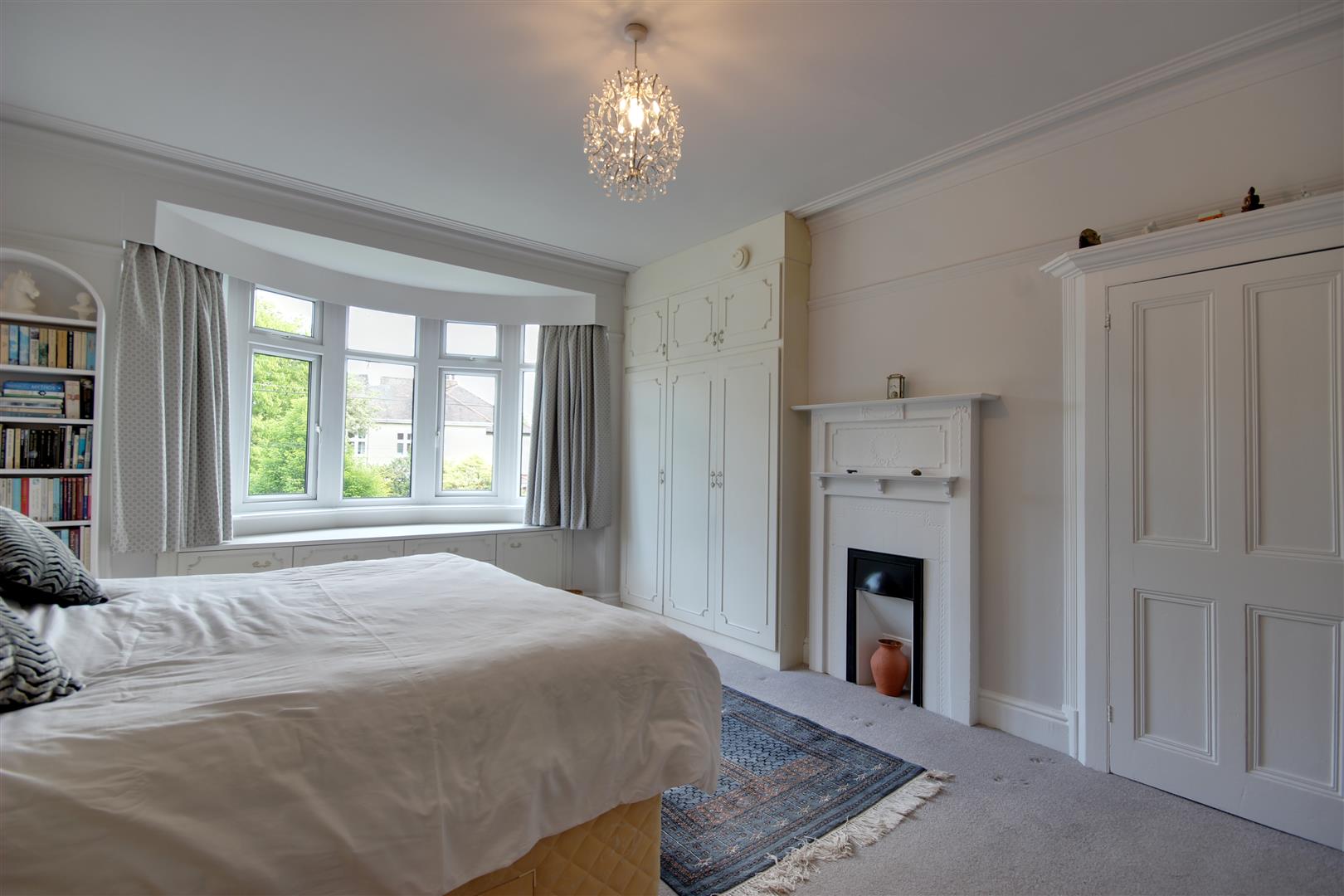 Bedroom 4 - 3.66m x 3.20m approx (12'0" x 10'6" approx) - Bay window to rear elevation, built in cupboard, period fireplace to chimney breast.