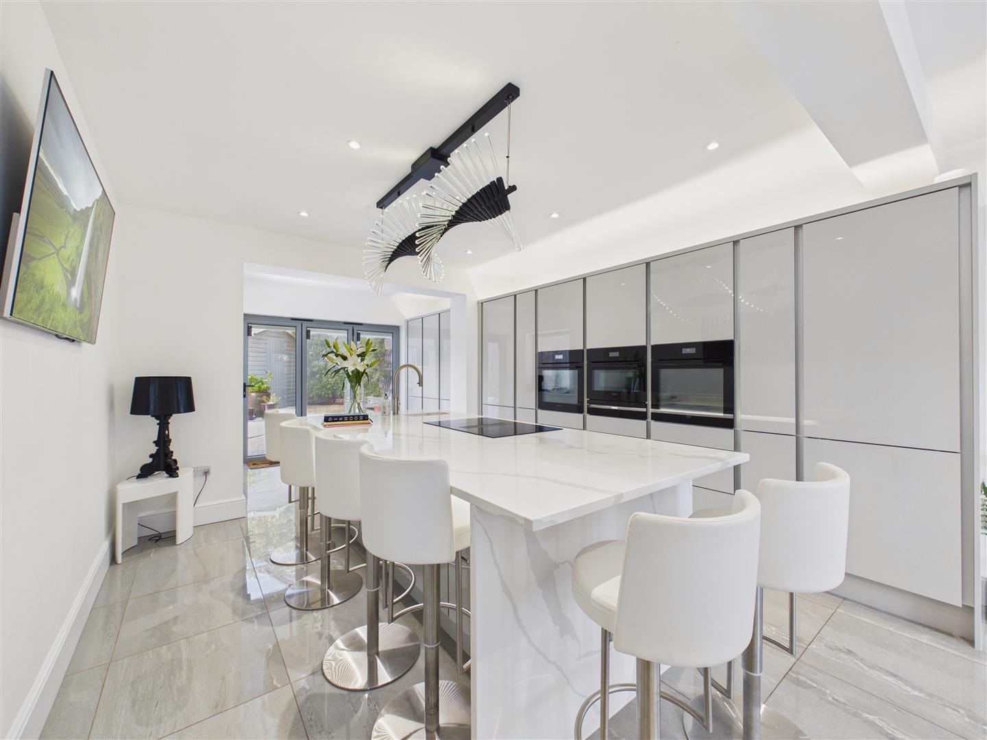 A stunningly transformed residence with an elite "Chef's" kitchen, automated shutters, and open-plan living. Highlights include a principal suite with balcony, a ground floor bedroom/office, and a southerly garden with a filtered stream and waterfall. High-spec smart tech throughout and potential for a self-contained annex.